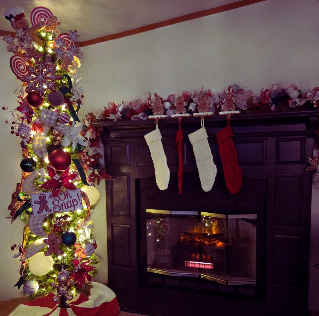 - I set a deadline to have all of the Christmas decorations up by November 1 (nobody tells me what to do so I don’t care if you think that’s too early) and BY GOLLY the tree, garland, wreath, stockings and wall decor are glowing beautifully. I went for a gingerbread theme.